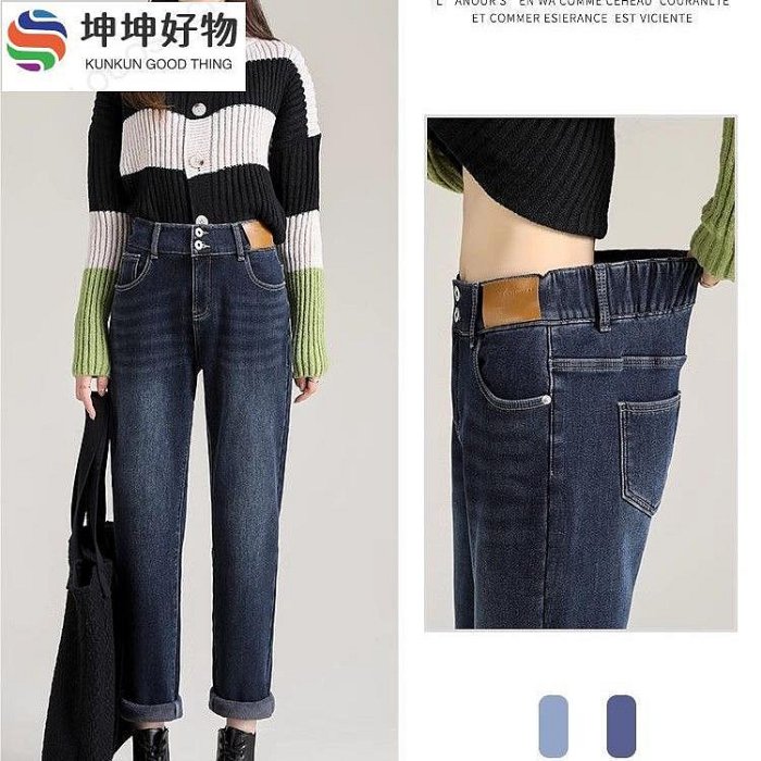 優寶購物《ubao.Tw》特貨品商城,黑貓宅配,取貨付款,哈倫加絨加厚牛仔褲女秋冬季2025新款寬松顯瘦松緊腰直筒老爹褲子~坤坤好物~ | Yahoo拍賣