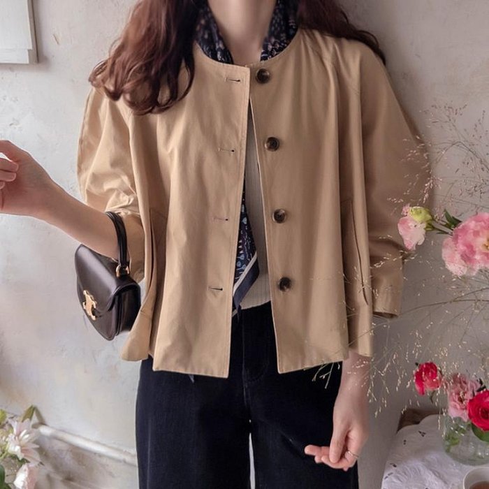 優寶購物《ubao.Tw》特貨品商城,黑貓宅配,取貨付款,Bellee 正韓 可愛澎澎袖無領風衣外套 【0930-5】 | Yahoo拍賣