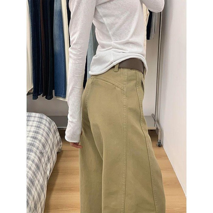 優寶購物《ubao.Tw》特貨品商城,黑貓宅配,取貨付款,美式復古卡其色高腰闊腿牛仔褲女2025春季新款寬松顯瘦垂感拖地褲 | Yahoo拍賣