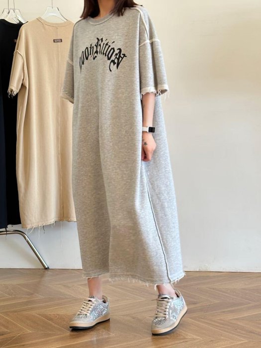 優寶購物《ubao.Tw》特貨品商城,黑貓宅配,取貨付款,休閒毛鬚卷邊鬆弛感顯瘦連身裙👗 棉T裙 | Yahoo拍賣