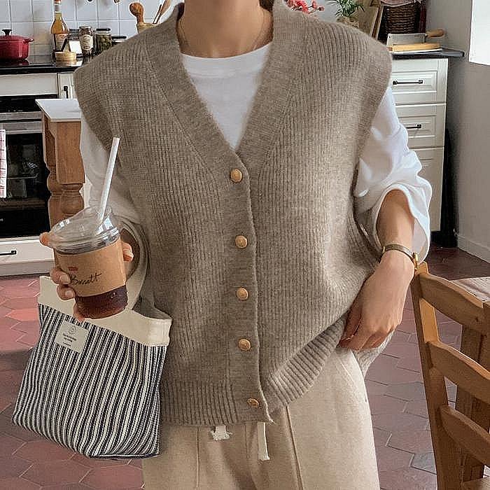 優寶購物《ubao.Tw》特貨品商城,黑貓宅配,取貨付款,Forever Kids 正韓 V領金扣針織背心【C621337】】韓國代購 | Yahoo拍賣