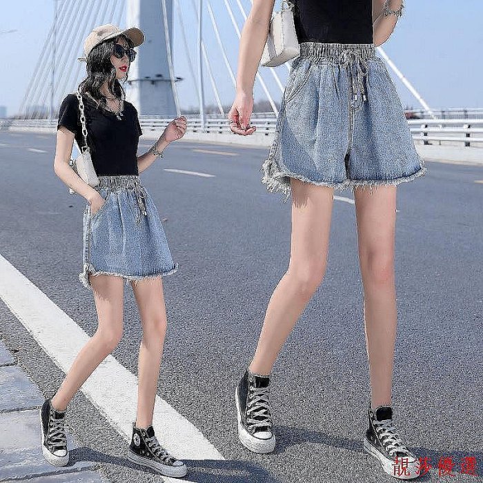 優寶購物《ubao.Tw》特貨品商城,黑貓宅配,取貨付款,牛仔短褲女 大尺碼短褲女 休閒短褲 闊腿短褲女 胖mm加大碼牛仔短褲夏a字闊腿寬松緊高腰女學生韓版加肥女裝200斤-靚莎優選 | Yahoo拍賣