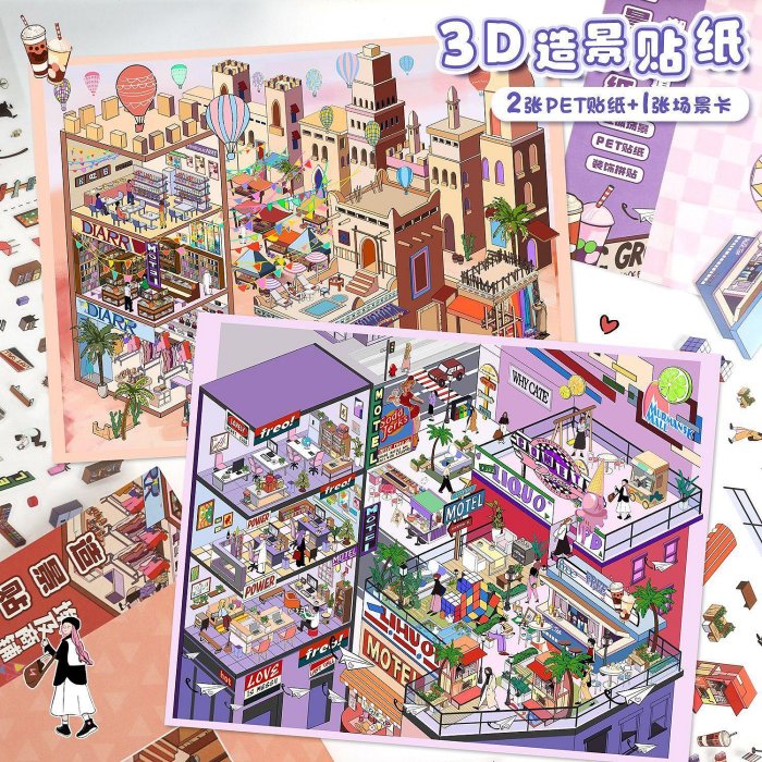 優寶購物《ubao.Tw》特貨品商城,黑貓宅配,取貨付款,70.0藝藍造景貼紙寫實風大號場景貼紙3D立體小屋貼紙diy解壓手帳 | Yahoo拍賣