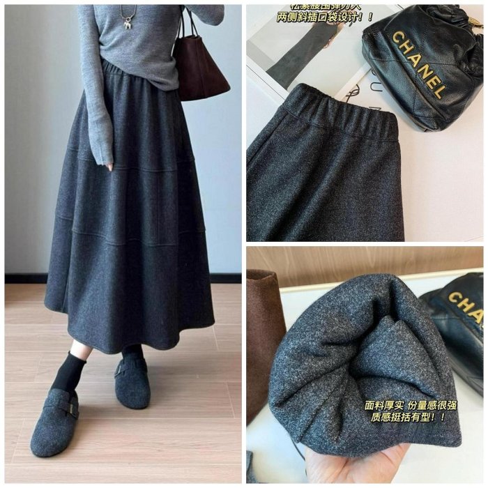 優寶購物《ubao.Tw》特貨品商城,黑貓宅配,取貨付款,秋冬新款 高雅赫本風~格雷系黑灰設計遮跨氣質羊毛呢 高腰花苞裙 傘裙 長裙 [Classique*真經典] 110305 | Yahoo拍賣