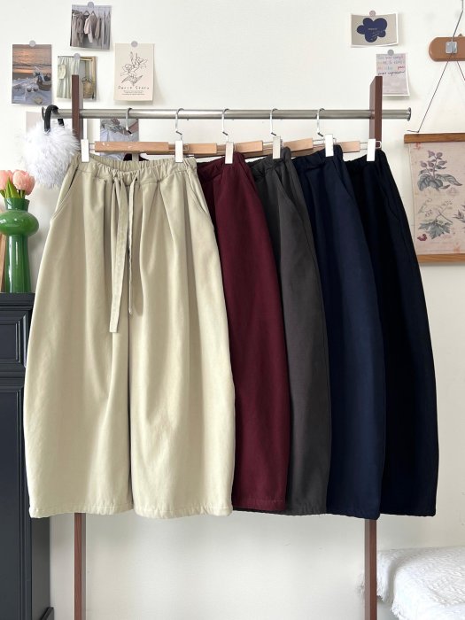 優寶購物《ubao.Tw》特貨品商城,黑貓宅配,取貨付款,IM 設計師簡約繭型褲/不掉絨木果絨磨毛柔軟斜紋水洗棉鬆緊收褶南瓜彎刀褲/寬飄帶抽繩挺闊分割加絨氣球休閒褲 | Yahoo拍賣