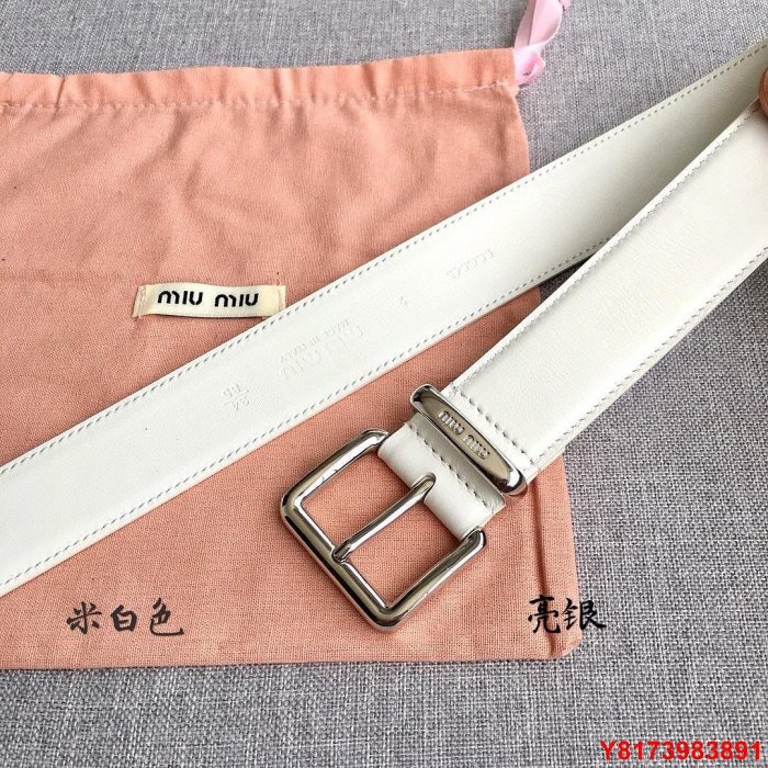 優寶購物《ubao.Tw》特貨品商城,黑貓宅配,取貨付款,全新繆繆女生皮帶真皮腰帶 精致亮銀色扣雙進口頭層牛皮米白色真皮皮帶寬度:3.5cm 女神 | Yahoo拍賣