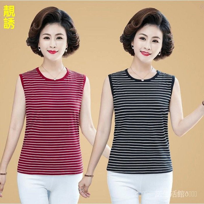 優寶購物《ubao.Tw》特貨品商城,黑貓宅配,取貨付款,中老年女裝夏裝全棉短袖T恤衫條紋大碼寬鬆媽媽裝弔帶無袖背心 | Yahoo拍賣