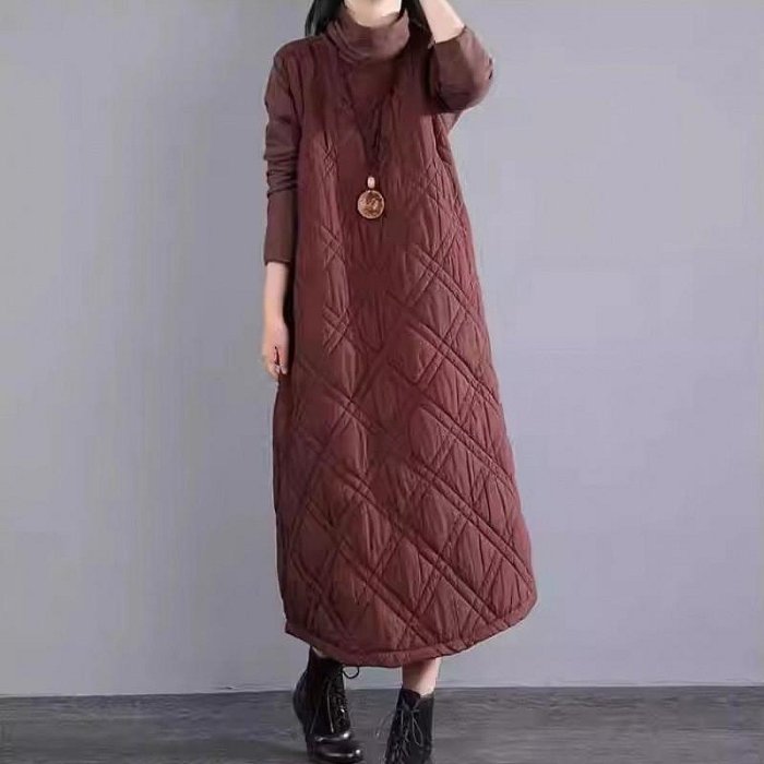 優寶購物《ubao.Tw》特貨品商城,黑貓宅配,取貨付款,大尺碼洋裝清倉處理特價大尺碼女裝2025秋冬加棉加厚棉服長款菱格高領洋裝-時黛·kairosia | Yahoo拍賣