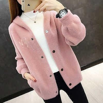 優寶購物《ubao.Tw》特貨品商城,黑貓宅配,取貨付款,2025年新款連帽厚仿水貂絨毛衣女短版外套女春秋加冬針織小外套上衣【沐嶼優選】 | Yahoo拍賣