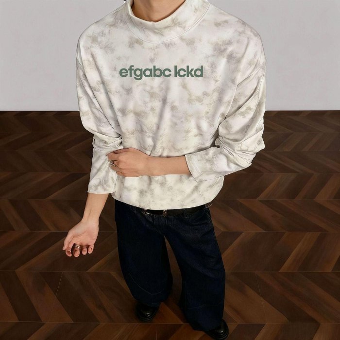 優寶購物《ubao.Tw》特貨品商城,黑貓宅配,取貨付款,男士新款半高领扎染德绒打底衫美式简约字母印花潮流百搭长袖t恤 | Yahoo拍賣