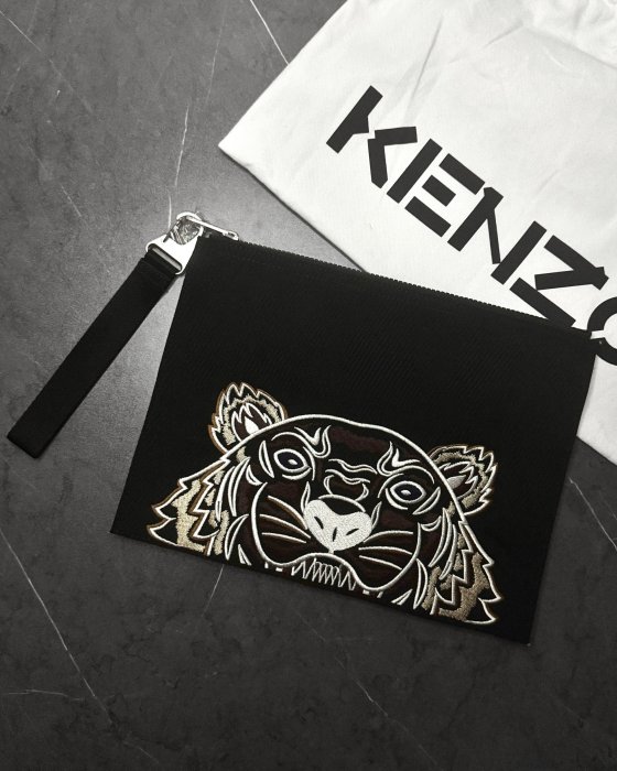 優寶購物《ubao.Tw》特貨品商城,黑貓宅配,取貨付款,限時特價【飾愛JY精品服飾】KENZO-經典虎頭刺繡 咖啡棕 手拿包 | Yahoo拍賣