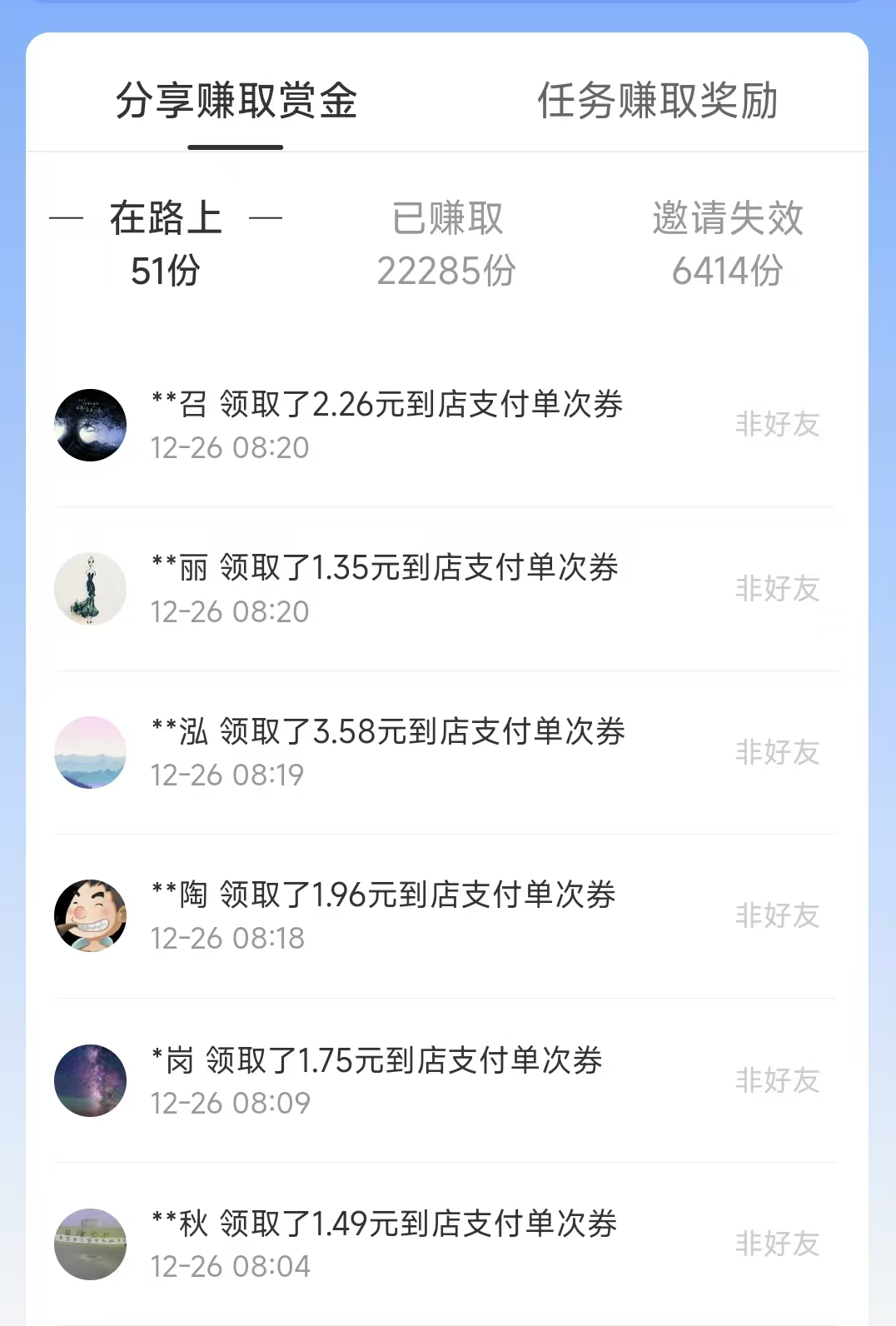 13 zl1995 OP @crocoBaby #8 你是不是错过时间,它只有那一两天有 1-2 元啊!比如现在邀请一个有 1.45 元,等到了下午估计只有 1.2 ,到了晚上 0.9 ,明天估计就剩下几毛钱了 |