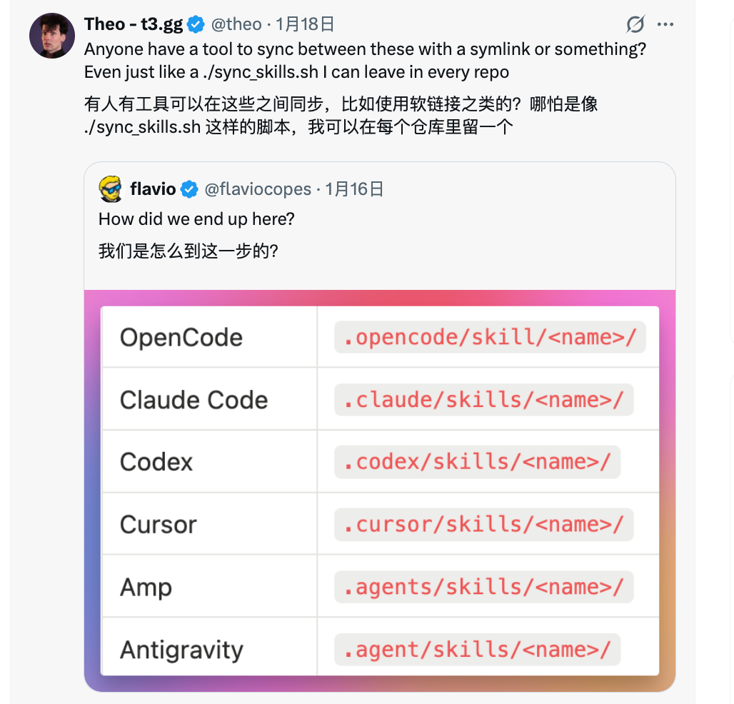 最近 Skills 比较火,但是各家 AI 编程工具的安装路径也是各自为政。