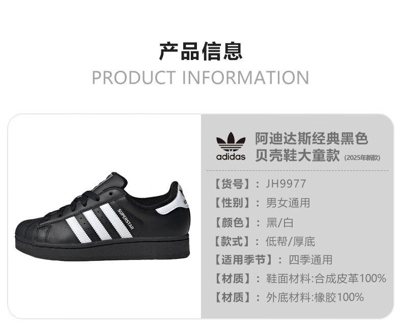 ADIDAS阿迪达斯经典贝壳头运动板鞋三叶草系列休闲 JH9976