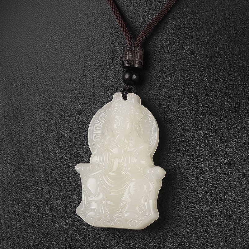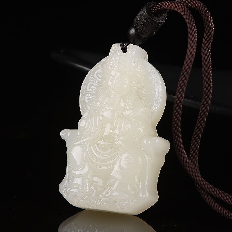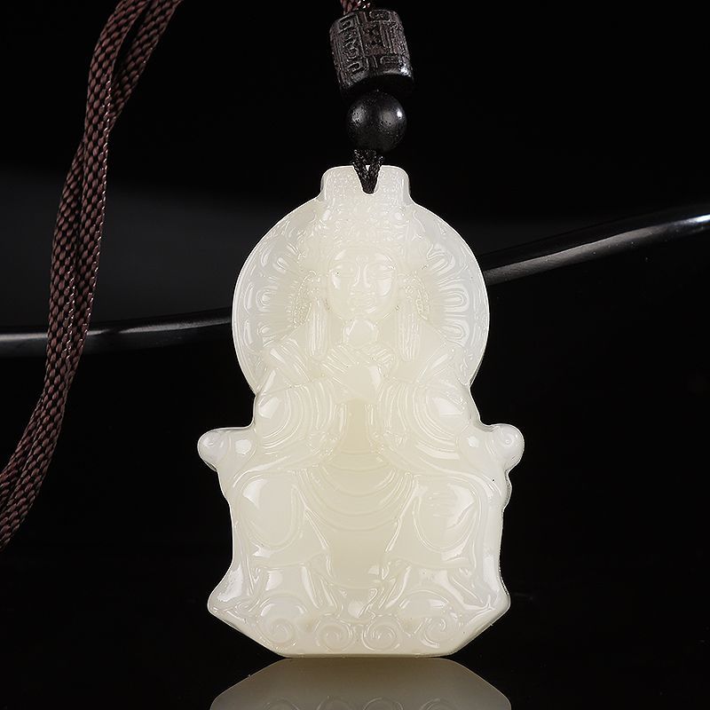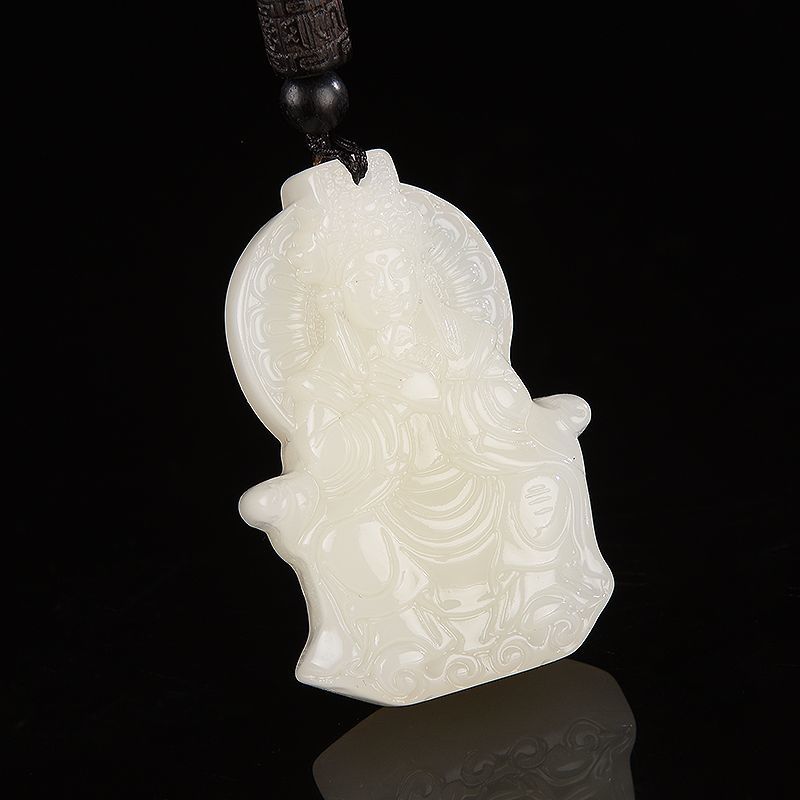 媽祖新疆和田白玉吊墜平安順遂男女款羊脂白玉石掛件媽祖好運玉佩