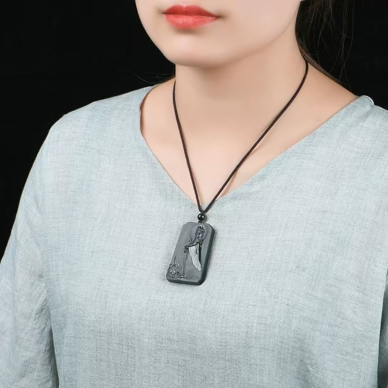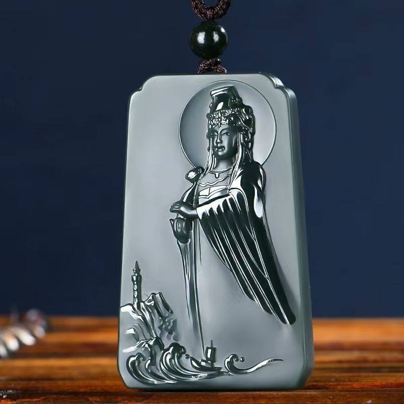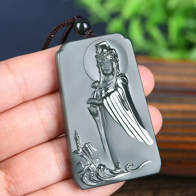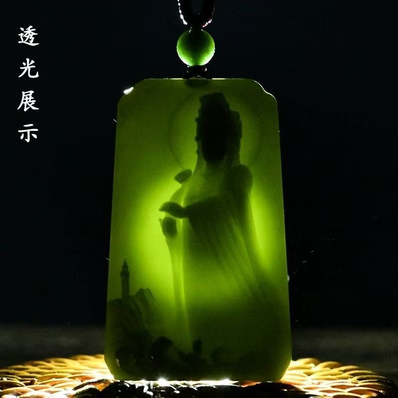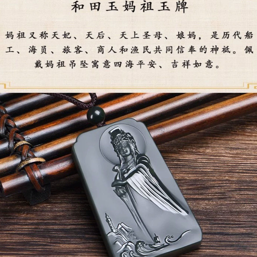 新疆和田青玉媽祖吊墜保佑男女通用玉石掛件