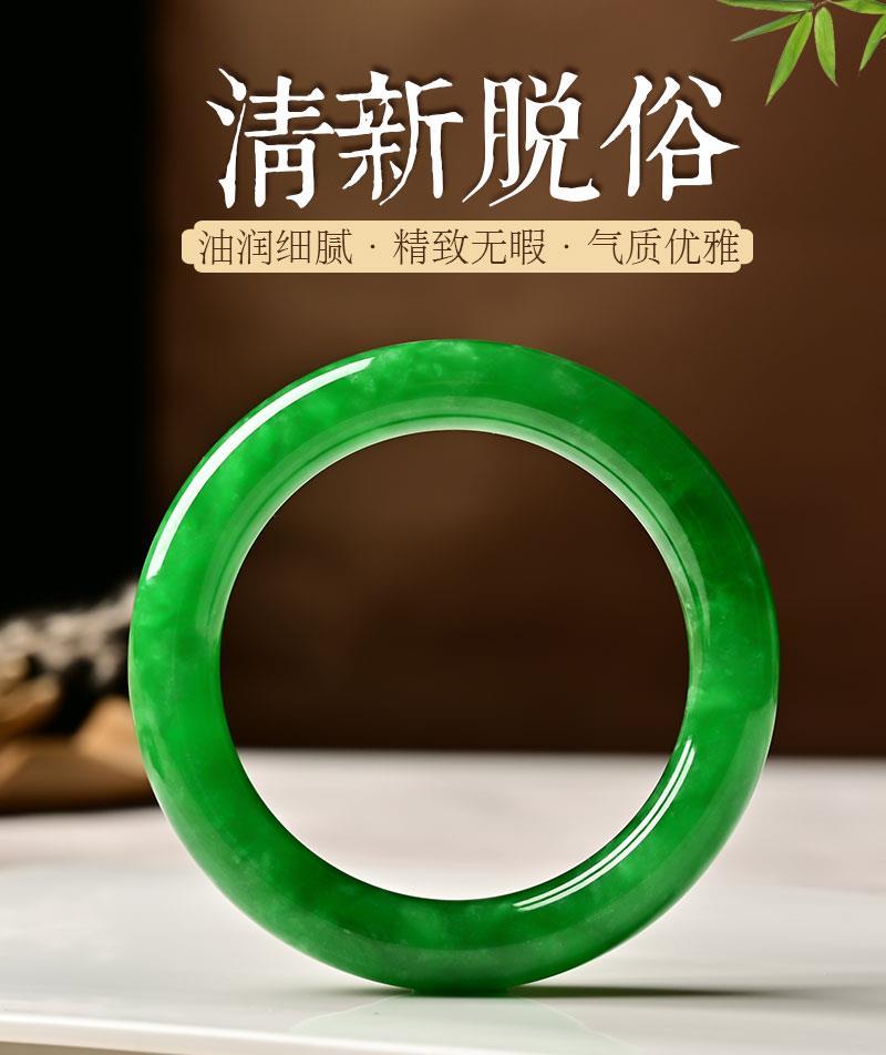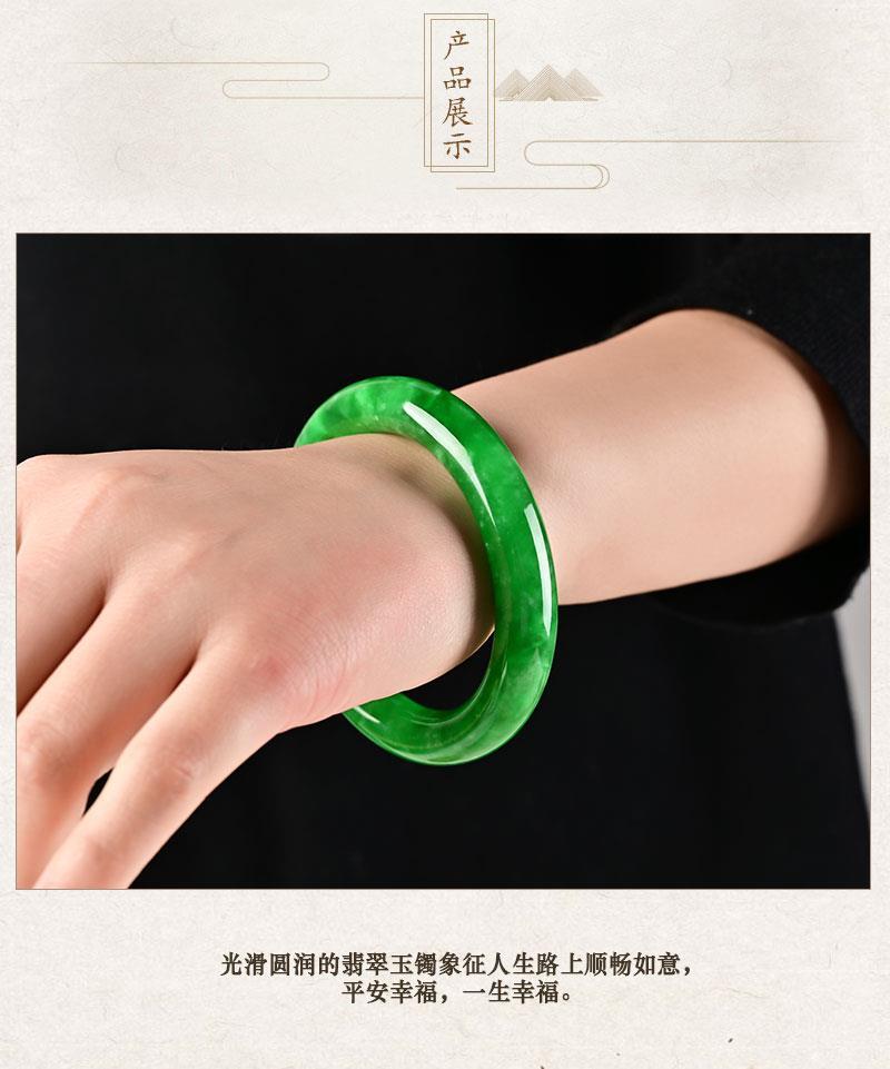 滿綠翡翠手鐲冰種天然陽綠a級貨老坑緬甸帝王綠圓條玉鐲子女帶證書