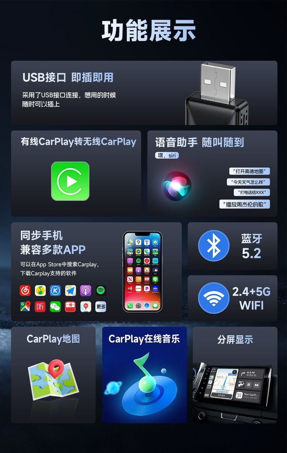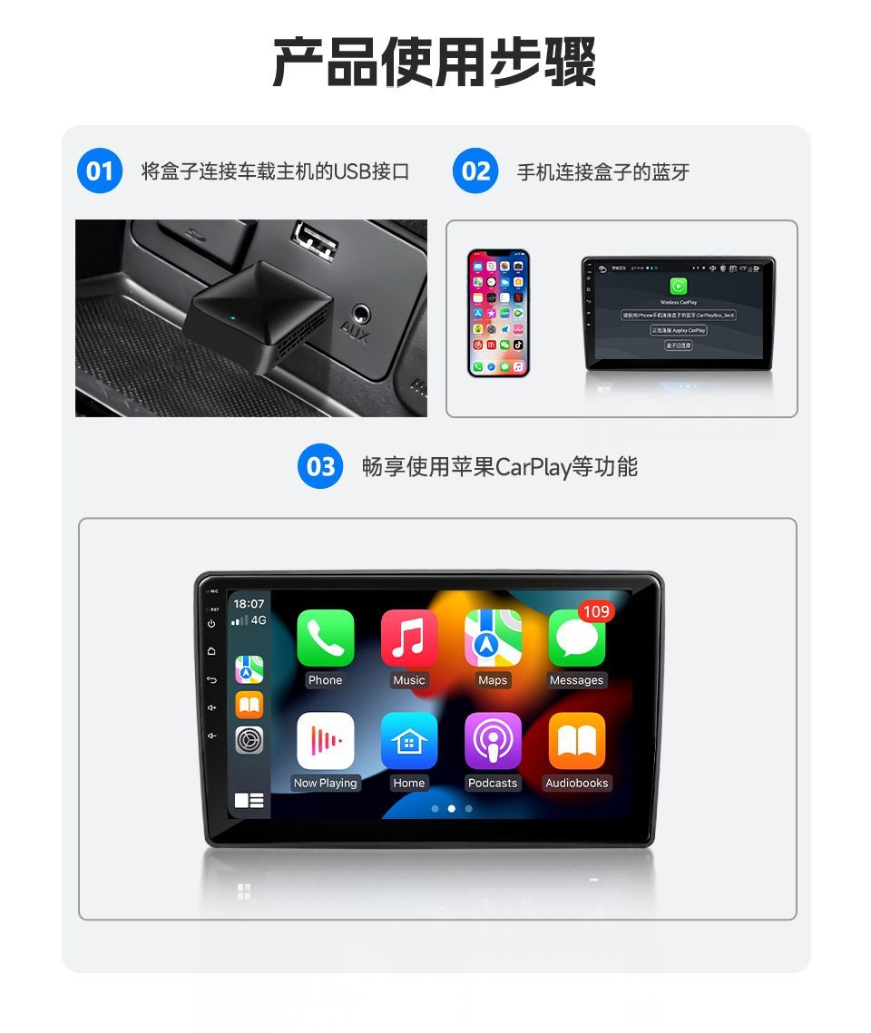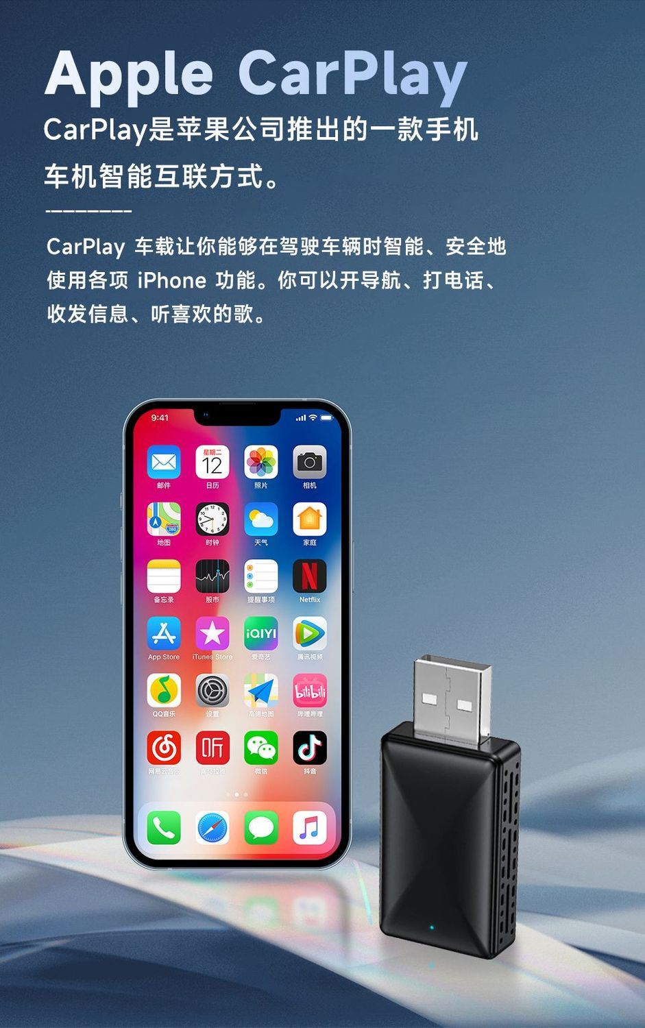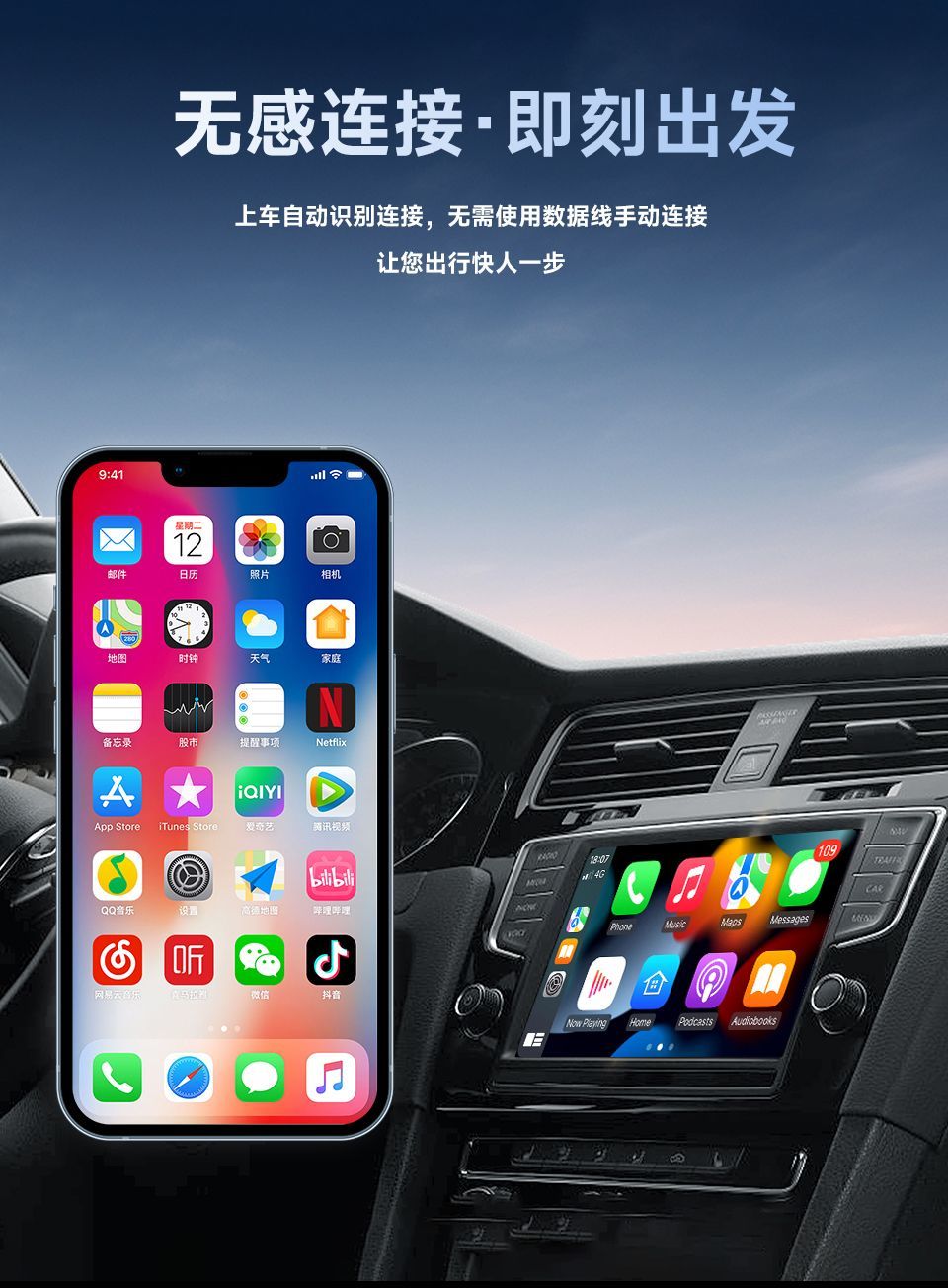iPhone車載Carplay有線轉無線盒子智能藍牙盒子通用Carplay互聯盒子
