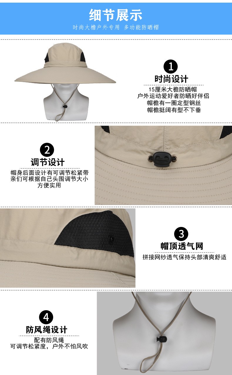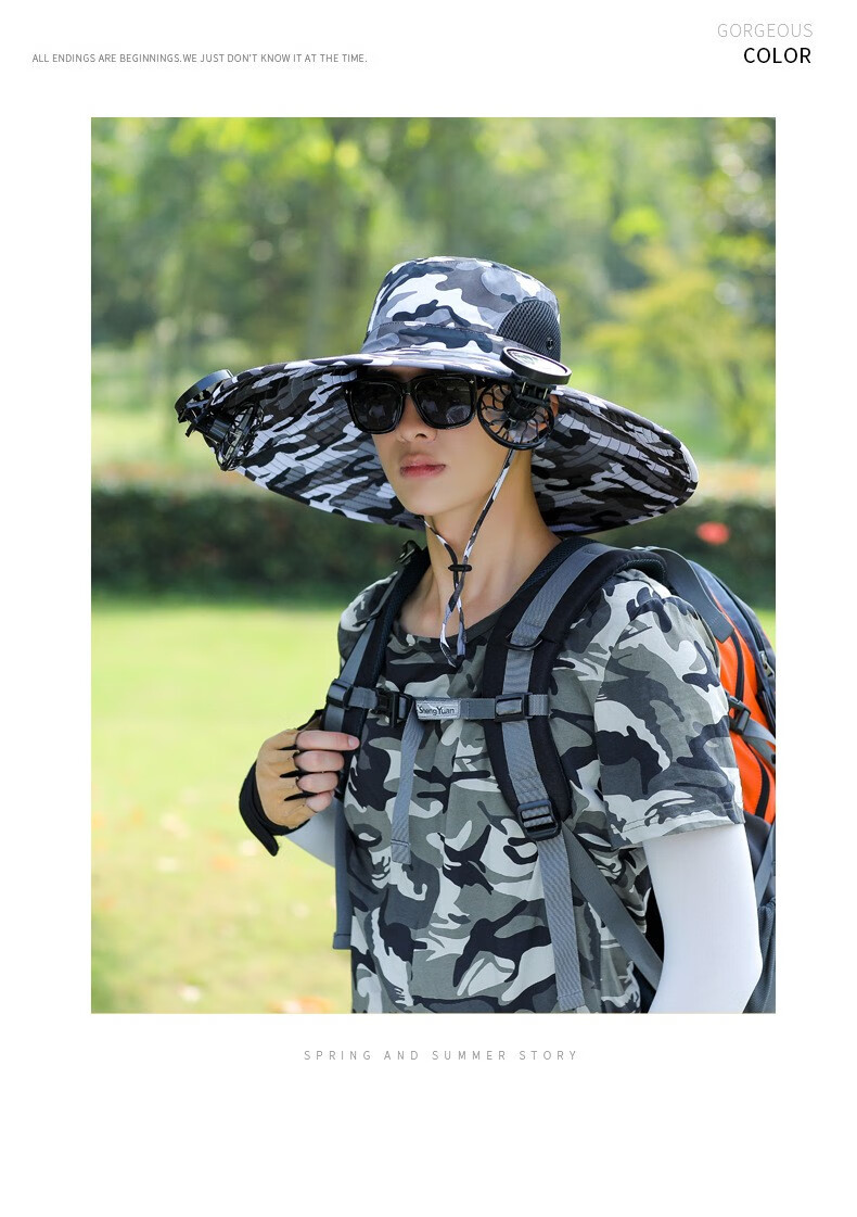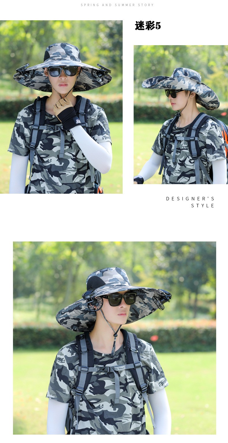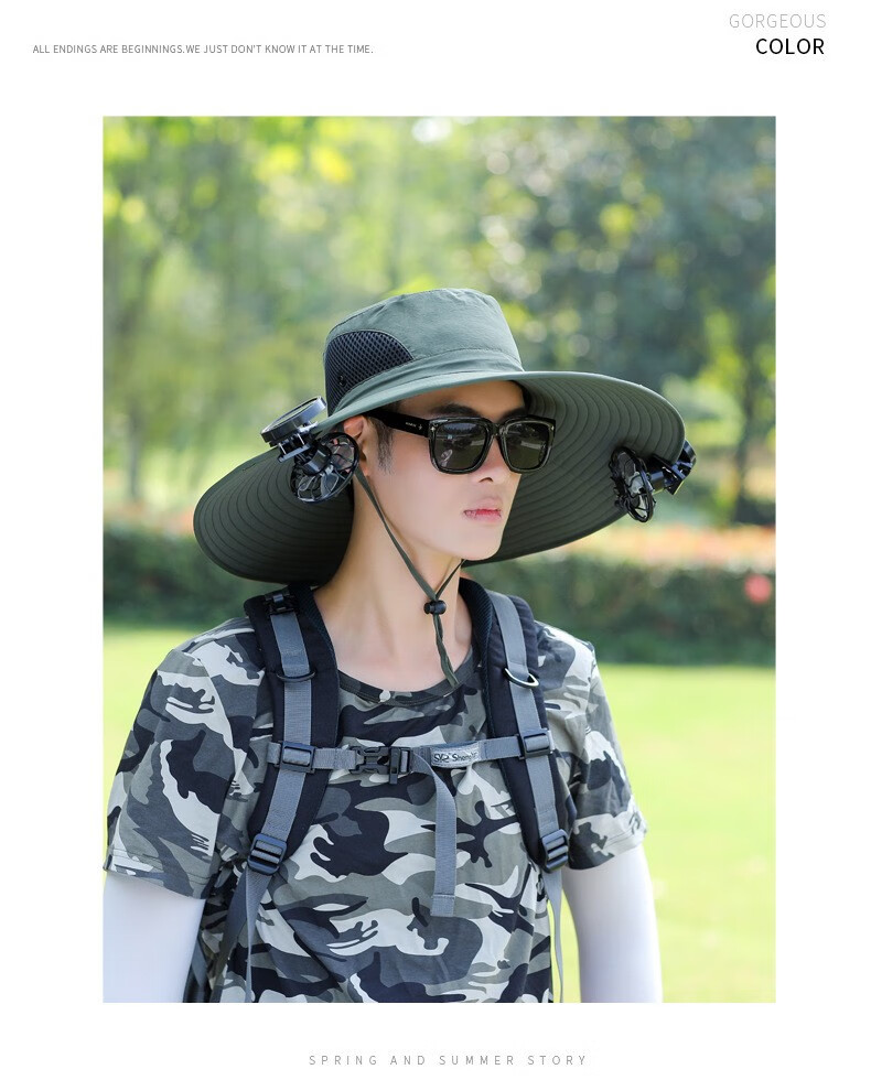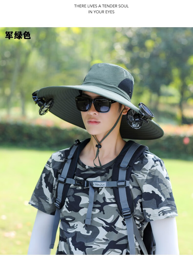 太陽能風扇帽 黑色 【鋼絲款+2個太陽能風扇】大檐透氣漁夫帽