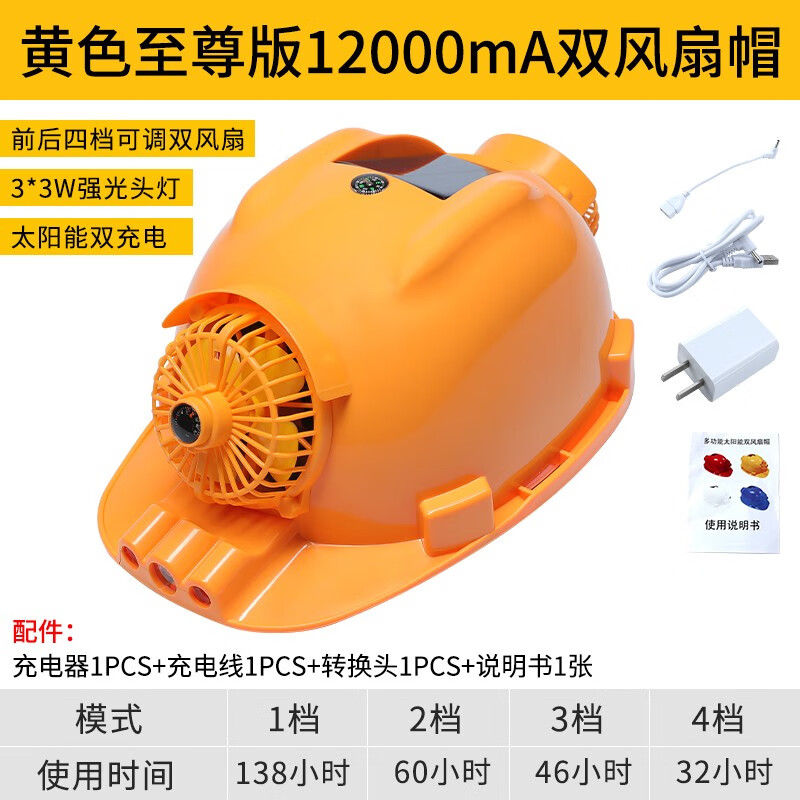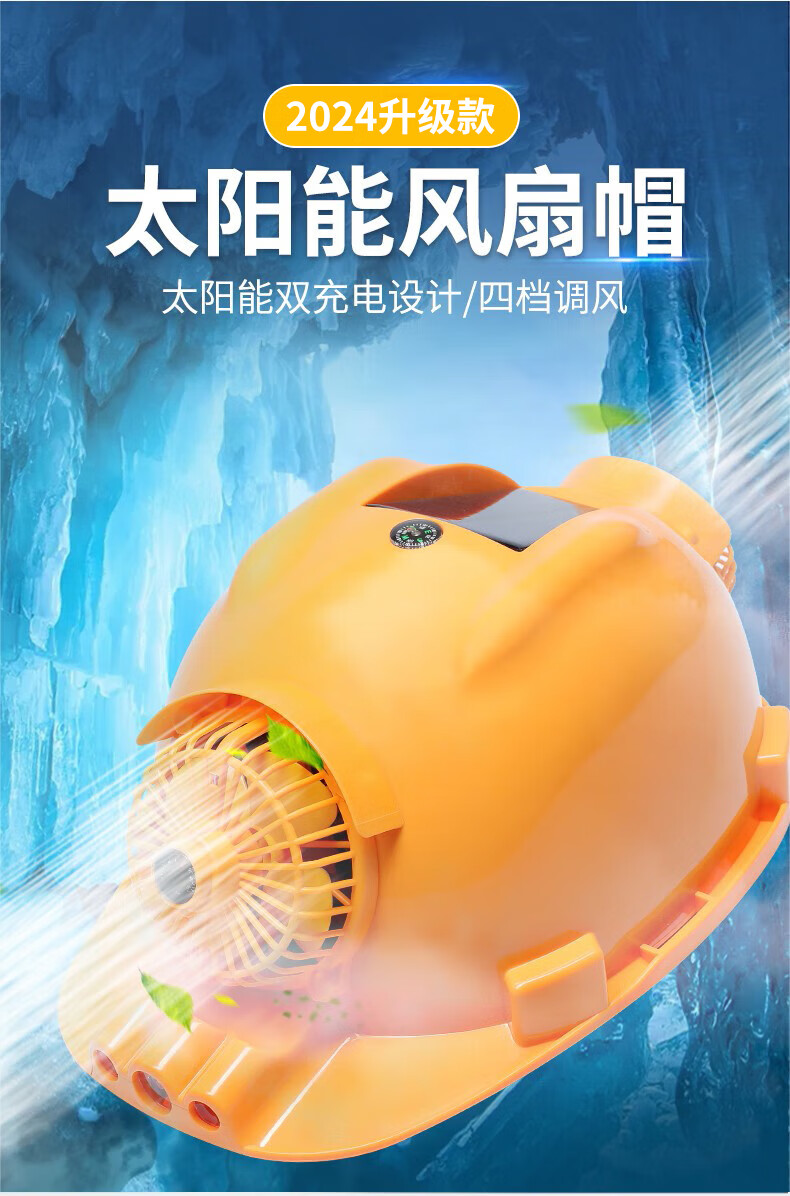 安全帽帶風扇太陽能可充電兩用頭盔帽子風扇製冷遮陽頭盔
