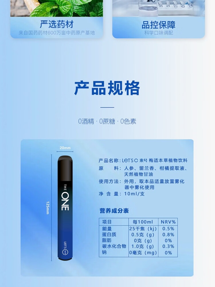 【包含主機】LET'SC梅適One本草電子微網霧化器10ml大容量薄荷葡萄多果味